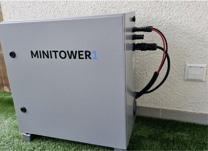 Am Tag decken die Photovoltaikmodule die Grundlast in der Wohnung und laden die Akkus. Nach Sonnenuntergang speist der Minitower Strom ins Wohnungsnetz und deckt weiterhin die Grundlast mit selbst erzeugtem Solarstrom. Wie viel Energie der Minitower abgibt, kann über einen Drehregler stufenlos zwischen 30 und 270 Watt eingestellt werden.