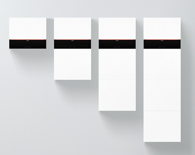 Der Stromspeicher Vitocharge VX3 von Viessmann vereint einen Wechselrichter und bis zu drei Batteriemodule in einem. Er wird als Hybrid-Stromspeicher mit integriertem Solarwechselrichter oder als AC-gekoppelter Stromspeicher zur Nachrüstung von Photovoltaikanlagen eingesetzt.