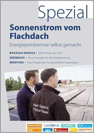 Hier finden Sie auch jede Menge Praxisberichte, die zeigen, wie der eigene Energiepreisdeckel gelingt und welche Lösungen dafür inzwischen existieren. Sie erfahren auch, mit welchen Herausforderungen die Planer und Installateure auf dem Dach zu kämpfen haben. Abgerundet wird das neue Spezial mit einer Synopse über die aktuellen Regelungen für den Bau und Betrieb von Photovoltaikanlagen auf Flachdächern nach der EEG-Novelle. Diese bietet einige Vorteile.