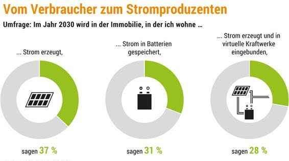 Mehr als jeder Dritte (37 Prozent) in Deutschland glaubt, bis 2030 selbst Stromproduzent in der eigenen Immobilie zu werden. Fast genauso viele (31 Prozent) glauben, dass der vor Ort erzeugte Strom dann in einer Batterie gespeichert wird. 28 Prozent können sich sogar vorstellen, dass dieser Strom im Rahmen eines virtuellen Kraftwerks gehandelt wird. Dies ergibt eine Umfrage unter insgesamt 2.000 Bundesbürgern im Auftrag von WWF und dem Ökoenergieversorger Lichtblick.
