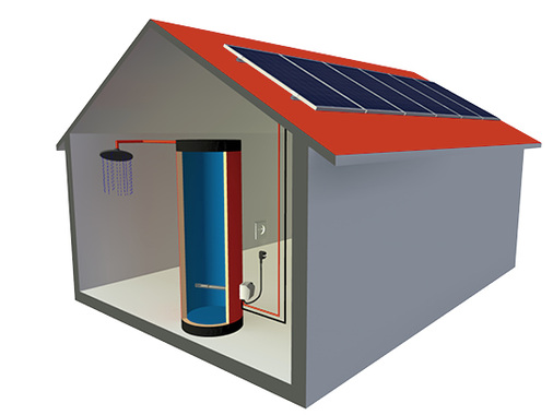 Die österreichische Firma My-PV nutzt Sonnenstrom, um Wasser zu erhitzen. Das zum Patent angemeldete System Elwa ist für Zwei- bis Vier-Personen-Haushalte ausgelegt. Mit einer Leistung von 1,5 bis 2,1 Kilowatt können bis zu 50 Prozent des jährlichen Warmwassers erzeugt werden. Dies entspricht einer thermischen Solaranlage mit vier bis acht Quadratmetern. Elwa hat einen Wirkungsgrad von über 99 Prozent und ist damit besser als viele Wechselrichter. Das System ist zudem einfacher als Solarthermie: Denn elektrische Leitungen sind deutlich einfacher zu verlegen als Rohrleitungen. Und das System funktioniert auch bei Stromausfall. Bei schlechtem Wetter ist durch eine automatische zusätzliche Heizung vom Netz die erforderliche Warmwassertemperatur gewährleistet. Damit entfällt die Inbetriebnahme der Heizung in den Übergangszeiten und im Sommer. Zusätzlich erlaubt das System auf sehr einfache Weise die Schichtladung des Warmwasserspeichers durch Installation eines zweiten Gerätes. Elwa kann auch bei bestehenden Photovoltaikanlagen eingesetzt werden. Der Eigenverbrauchsanteil steigt damit auf bis zu 60 Prozent bei einer Anlage mit fünf Kilowatt Leistung.