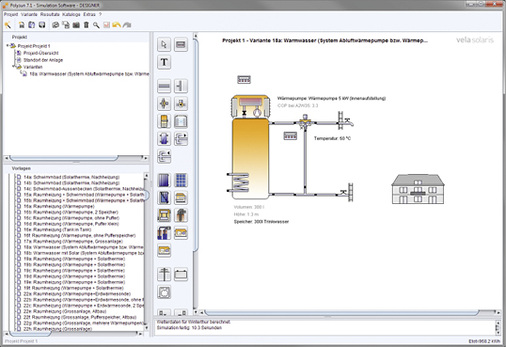 Vela Solaris und SMA Solar Technology haben gezeigt, wie die Tools Sunny Design und Polysun kombinierte Anlagen mit Photovoltaik und Wärmepumpen berechnen. Die Warmwassererwärmung durch Wärmepumpen beispielsweise eignet sich gut für die Entlastung des Stromnetzes. Und die Solarenergie wird als Wärme effizient gespeichert. Mit Strom zu heizen, kommt immer mehr in Mode. Anhand von statistischen Wetterdaten und Benutzerprofilen werden verschiedene Systemlösungen verglichen. Das Simulationstool Polysun des Schweizer Softwareanbieters Vela Solaris kann das. Standardmäßig werden Eigenstromproduktion, Eigenverbrauchsverhältnis und Autarkiegrad ausgerechnet.