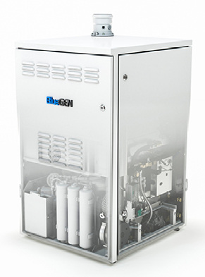 Der Hersteller Solid Power aus Heinsberg präsentiert ein BHKW mit Brennstoffzellen. Der Blue Gen wird mit dem Gasanschluss verbunden und erzeugt aus Erd- oder Bioerdgas Strom und Wärme. Der Fokus liegt dabei auf der Stromerzeugung mit einem elektrischen Wirkungsgrad von bis zu 60 Prozent. Die bei diesem Prozess entstehende Wärme wird zur Warmwasserbereitung genutzt. Anders als herkömmliche BHKW kann der Blue Gen durchgehend betrieben werden, um Wohn- und Gewerbegebäude mit Energie zu versorgen. Bis zu 13.000 Kilowattstunden Strom im Jahr liefert das Gerät mit 1,5 Kilowatt elektrischer und 600 Watt thermischer Leistung.