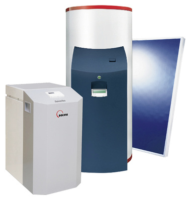 Die Sole-Wasser-Wärmepumpe Solvis Teo mit 10 oder 16 Kilowatt Heizleistung erreicht nach Angaben von Solvis in Kombination mit der Solarheizung Solvismax und dem Erdreich-Langzeitspeicher E-Tank als Gesamtsystem eine Jahresarbeitszahl von bis zu 7,0. Bei dem Dreikomponentensystem lagert ein isolierter Langzeitspeicher überschüssige Solarwärme mithilfe von Wärmeübertragungsrohren im Erdreich ein und speist sie in der kalten Jahreszeit wieder in das Heizsystem ein. Die im E-Tank eingelagerte Sonnenwärme bewirkt eine um zehn Grad Celsius höhere Quellentemperatur für die Wärmepumpe. Das Gesamtsystem wird mit dem Regler Solvis Control gesteuert.