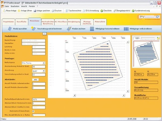 Materialaufwand im Griff: Mit PV-Professional steht dem Solarprojektierer eine pfiffige Software zum Planen, Visualisieren und Berechnen des Materialaufwandes von Photovoltaikanlagen zur Verfügung, die seinen Arbeitsalltag wesentlich vereinfacht.