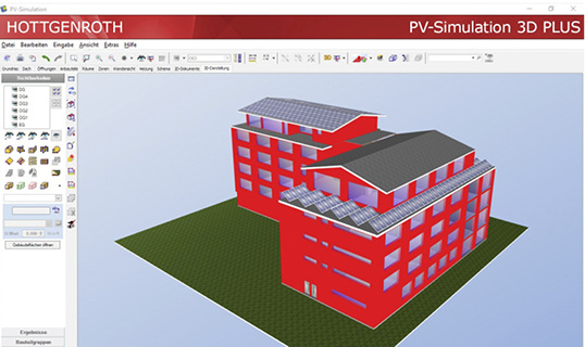 Hottgenroth bietet mit PV-Simulation 3D eine umfassende Software zur Photovoltaik-Anlagenplanung. Sperrflächen werden bei einer automatischen Vollbelegung berücksichtigt. Die Produktdatenbank ermöglicht eine Vielzahl von Berechnungskombinationen. Der Anwender kann die Modul- und...