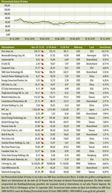 Photovoltaik Global 30: Passend zu den frostigen Temperaturen haben viele Investoren kalte Füße bekommen. Der Branchenindex gab erneut nach.