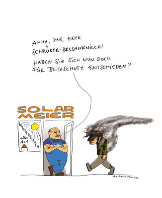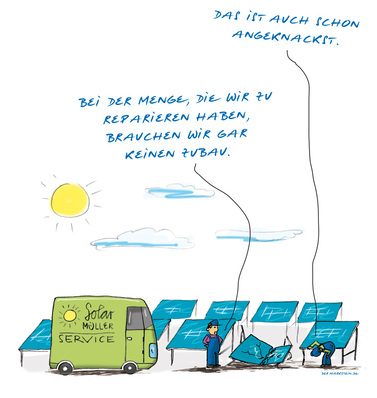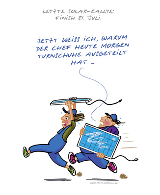 Angesichts der Flüchtlingswelle hat unser Cartoon aus der Juniausgabe doppelte Brisanz. Wollen Sie mit dieser Botschaft in Ihrer Werkstatt oder Ihrem Büro für Photovoltaik werben? Wir senden Ihnen auf Wunsch ein druckfähiges PDF in A3 – das ist unser...