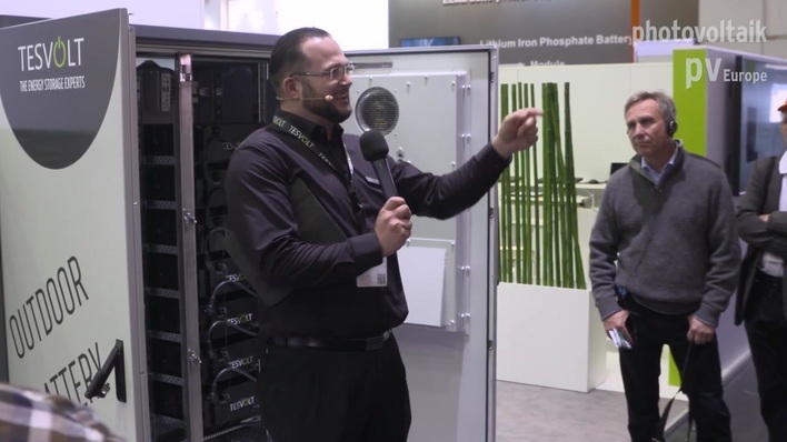Bei den PV Guided Tours 2019 stellte Tesvolt den neuen Megawatt-Container TPS 2.0 vor. Er ist 40 Prozent günstiger als seine Vorgänger und bringt doppelt so viel Leistung pro Kubikmeter.