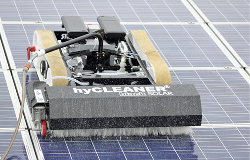 Die Firma TG Hylift aus Gronau-Epe hat das autonome Reinigungsgerät Hycleaner Black Solar entwickelt. Es verfügt über rotierende Bürsten und wird per Funk ferngesteuert. Das Eigengewicht liegt unter 100 Kilogramm. Die erzielbare Flächenleistung ist sehr hoch und eignet sich, um große Flächen...