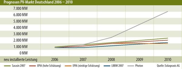 Höhenflug: Dass der deutsche PV-Markt weiterwächst ist unumstritten. Doch die aktuelle Prognose von PHOTON Consulting stößt in ungeahnte Dimensionen vor. Sie prognostiziert bis 2010 eine Versechsfachung der jährlich installierten Leistung.