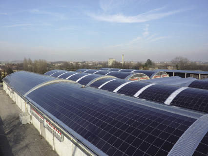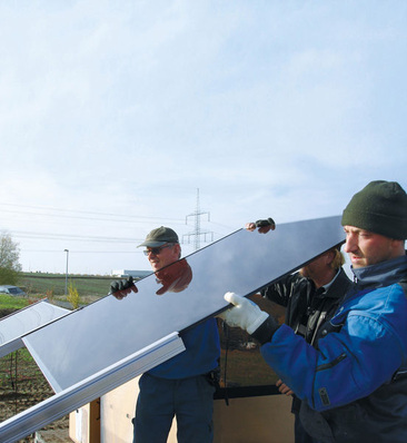 Die Firma Bosch Solar Energy bietet für ihre rahmenlosen mikromorphen Dünnschichtmodule ein Aufständerungssystem von Bosch Rexroth an. Statt wie sonst oft üblich würden die Module nicht mit Klemmen, sondern in Einschubschienen befestigt. Die Module würden in die Führungsstränge eingeschoben und...