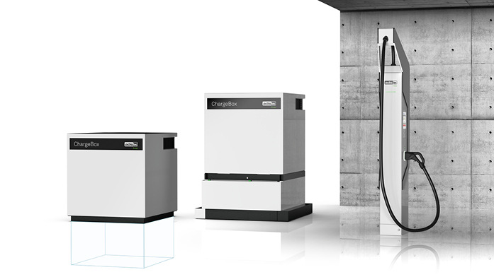 Mit der neuen Chargebox, dem dazugehörigen Batteriesystem für den Außenbereich, kann die Ladestation nun auch ebenerdig installiert...