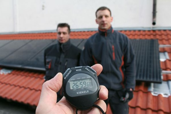 Montagetest: Wie schnell es geht, Module auf einem Dach zu montieren, lässt sich am besten vor Ort feststellen. Gemeinsam mit einem unabhängigen Gutachter hat photovoltaik dieses Mal den Montagesystemhersteller Donauer Solartechnik besucht und die Zeit für die Montage von acht Modulen auf einem Schrägdach gestoppt. Dazu beurteilte der Gutachter von der DGS die Qualität des Systems.
