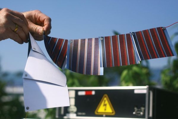 Papier-Solarzellen: Sie kosten wenig, lassen sich schnell in großen Massen drucken und könnten Solarstrom für die ganze Welt produzieren. In Sachen Wirkungsgrad und Lebensdauer sind die Zellen auf Papier der konventionellen Photovoltaik allerdings deutlich unterlegen. Auch Plastik-Solarzellen schneiden besser ab.