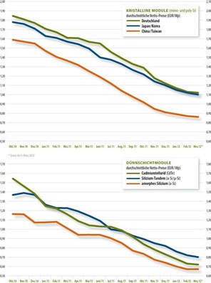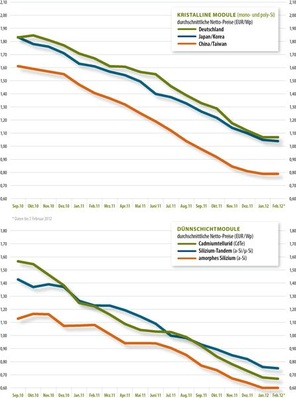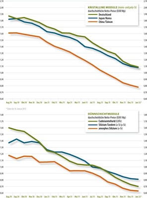 Modulpreise: Ein starkes viertes Quartal 2011 und eine ungewöhnlich hohe Nachfrage zu Beginn des Jahres 2012 haben den freien Fall der Modulpreise vorerst gestoppt. Bei chinesischen Tier-1-Herstellern zogen die Preise sogar weiter an.