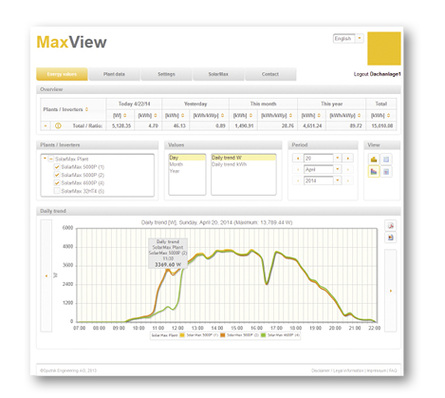 Solarmax ist ein Wechselrichter des Schweizer Unternehmens Sputnik Engineering. Neu ist: Die App Maxview von Solarmax ist nun für alle iOS- und Android-Geräte verfügbar. Ab Juni 2014 werden die Leistungswerte der Photovoltaikanlage im 15-Minuten-Takt aktualisiert. Zudem sei die Anwendung im...