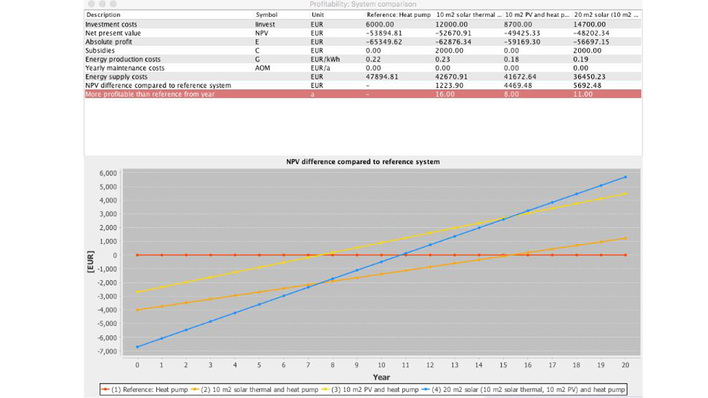In der Version 10.1. der Planungssoftware Polysun können mehrere Systeme miteinander verglichen werden, sowohl energetisch als auch wirtschaftlich.