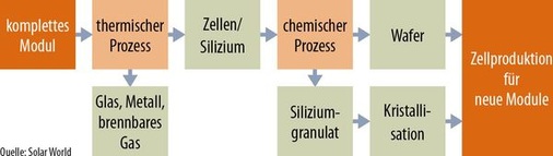 Die massenbezogene Recyclingquote bei Modulen liege bei durchschnittlich 75 Prozent. Sondermüll entstehe bei dem Verfahren nicht.