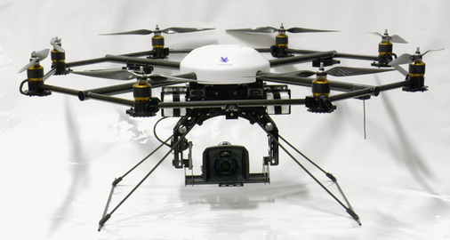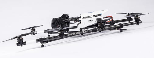 Der Asctec Falcon 8 mit der Autopilot-Technologie Asctec Trinity ist ein Multirotorsystem mit adaptiver Flugregelung. Der Asctec Trinity ist eine dreifach redundante Steuerungseinheit, ähnlich wie sie bei Verkehrsflugzeugen Standard ist. Zahlreiche Autofunktionen vereinfachen den Einsatz des patentierten V-Form-Oktokopters. Leergewicht: 1.100 Gramm.