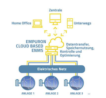 Ob Photovoltaikanlage, Windturbine, Biogas-, Blockheiz- oder Fließwasserkraftwerk: Das System Empuron Eve ist in der Lage, Einzelanlagen wie auch die Kombination verschiedener Erzeuger jeder Größenordnung zu steuern.
