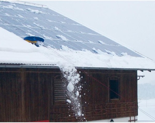 Wer es trotzdem nicht lassen kann und den Schnee auf seinen Modulen beseitigen will, sollte sich auf jeden Fall eine optimale Standsicherheit verschaffen und sich zum Beispiel mit einer Sicherheitsleine gegen das Abstürzen vom Dach sichern. Schneebedeckte Dächer sind noch rutschiger als nasse und damit doppelt gefährlich. Bei einem Sturz vom Dach wären die wenigen zusätzlichen Kilowattstunden sehr teuer erkauft.