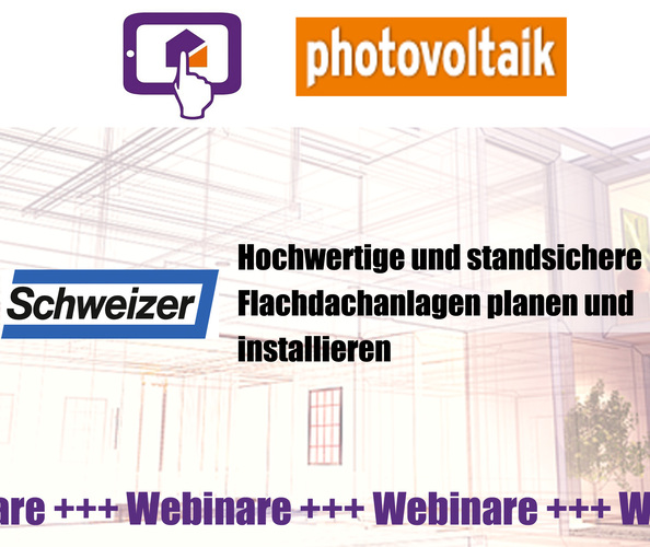 Im gemeinsamen Webinar der Ernst Schweizer AG, photovoltaik und haustec.de erklären Hanspeter Weiss von Schweizer, der Windgutachter Prof. Dr.-Ing. Hans Ruscheweyh und Jens Helmich von Schweizer, wie qualitativ hochwertige Solaranlagen auf Flachdächern standsicher und preiswert geplant und errichtet werden. Dauer: 1,5 Stunden.