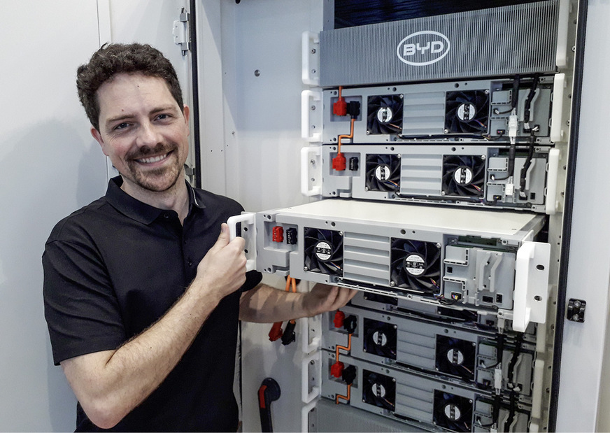 Die Einbindung erfolgt wie bei der Speicherfamilie Battery-Box über die Hybridwechselrichter zertifizierter Partner, etwa Kostal, SMA oder Fronius. Pfiffig: An der Seitenwand des Max-Lite ist eine Fläche zur Montage des Wechselrichters vorgesehen. Die Schnittstellen hält BYD offen, damit die Wechselrichter problemlos mit dem Batteriemanagementsystem kommunizieren können.