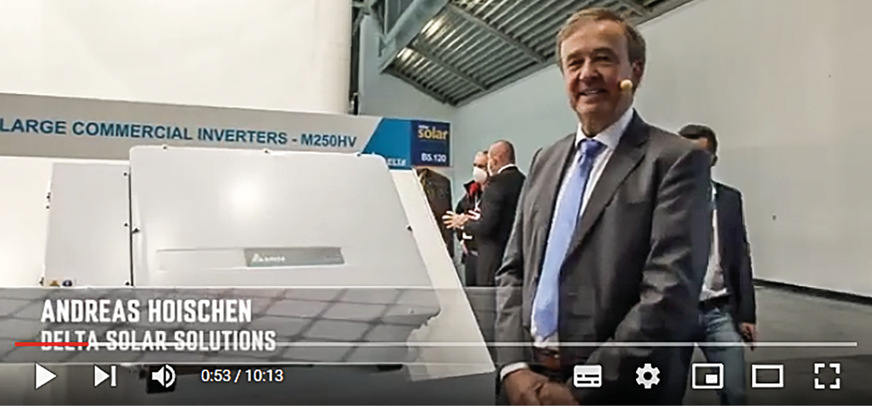 Delta stellte in München eine neue Generation seiner Stringwechselrichter vor. Die Geräte decken Leistungen zwischen 15 bis 100 Kilowatt ab und sind frei kombinierbar. Die Neuheiten erläutert Andreas Hoischen, Senior Director der Business Unit Photovoltaic Inverters von Delta. Sehen Sie alle Neuheiten!