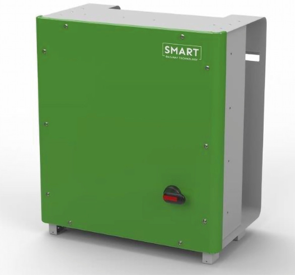 Die Smart Railway Technology aus Kassel stellt mit PV2Rail einen für Bahnstrom spezialisierten Solarwechselrichter vor. Er ist darauf ausgelegt, direkt ins Stromnetz der Bahn, das nur mit 16,7 statt 50 Hertz arbeitet, einzuspeisen.