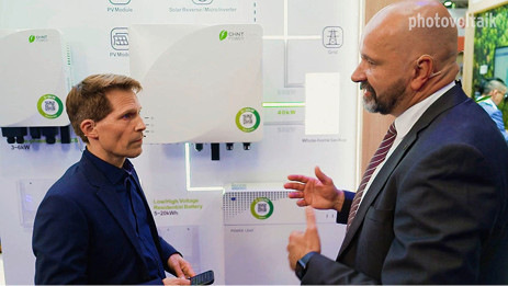 Der chinesische Anbieter brachte die neuen Solarwechselrichter M225HV und M350HV nach München. Sie unterstützen eine Spannung von bis zu 1.500 VDC und 800 VAC mit einem Wirkungsgrad von 99 Prozent. Sie sind entweder mit acht oder zwölf MPP-Trackern ausgestattet. Die Gerätekommunikation erfolgt über Power Line, zudem ist ein AC-Netzrekorder integriert.